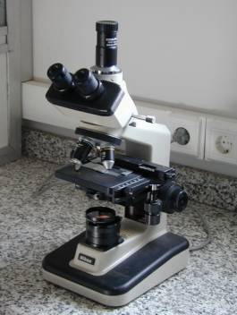 | El microscopi de llum polaritzada és un microscopi convencional al qual s'han afegit un seguit d'accessoris per a poder fer l'observació. Aquests accessoris poden comprar-se a la mateixa casa que ha fabricat el microscopi (solen ser molt cars). En el nostre cas ens els hem preparat nosaltres mateixos amb material molt més barat. |