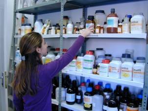 El primer que hem de fer és anar al magatzem de reactius i agafar alguna substància, per exemple el Benzoic