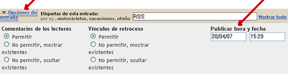 També podem canviar la data d'una entrada, configurar els permisos d'edició de comentaris i activar o desactivar l'opció Vínculos de retroceso. |