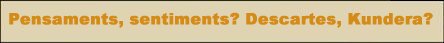 En front de René Descartes, Milan Kundera planteja una altra cara de la qüestió. No són pas els pensaments allò que em constitueix, sinó els sentiments: sento, doncs sóc. En el següent fragment de La immortalitat Kundera remarca el pes del patiment en el procés de prendre consciència del meu jo. La seva perspectiva es propera a la de Pascal quan aquest afirma que el cor té unes raons que el cap no entén.