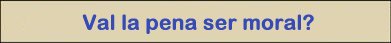 Amb quin d'aquests tipus de persona voldríem ser identificats? Potser és el moment de fer-nos una altra pregunta: "per què hem de ser morals si no ser-ho sembla que pot comportar avantatges?" És la mateixa pregunta que d'una manera més concreta ja es formulava el petit Wittgenstein: "per què hauria de dir la veritat si em pot ser beneficiós dir una mentida?" És una qüestió que tots els filòsofs s'han plantejat. |