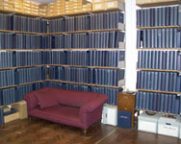 Beazley. En blau, les carpetes amb l'arxiu fotogràfic;