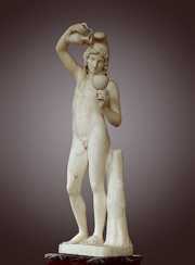 Ganimedes és un jove pastor troià d'una bellesa extraordinària. Júpiter, seduït, el va raptar perquè substituís Hebe en la funció de coper dels déus. El segle IIdC, quan Grècia ja ha passat a ser província romana, relats mítics tan populars com el de Ganimedes ja no tenen cap mena de transcendència religiosa. Tanmateix, continuen mantenint-se en la tradició dels pobles grecoromans perquè compleixen una funció estètica, o d'exaltació dels valors nacionals. |