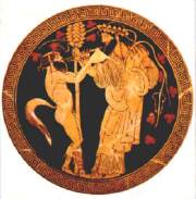 - Dionís amb el tirs i sàtir amb una flauta doble.