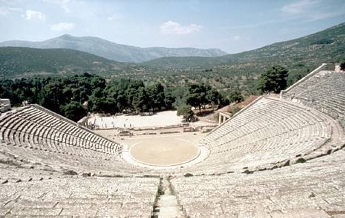 Les representacions tenien lloc en teatres de forma semicircular, en els quals