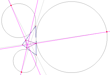 Sigui A' la intersecció de l'A-bisectriu amb la circumferència exinscrita oposada a A. Definim anàlogament B', C'. El triangle A'B'C' està en perspectiva amb el triangle de contacte interior.