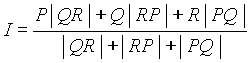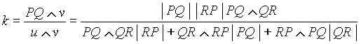 Since all outer products are equal because they are twice the triangle area, this expression is simplified: