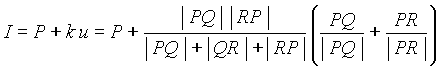 The incentre I is the intersection of the bisectrix passing through P, whose directing vector is u, and that passing through Q, with directing vector v: