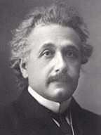 Nació el 14 de Marzo de 1879 en Ulm (Alemania). Alrededor de 1886 comenzó la escuela en Munich así como clases de violín. Hasta los trece años recibió educación religiosa judaica en su hogar. Dos años después ingresó en Luipold Gymnasium en donde recibió educación católica. No fue un buen estudiante y rechazaba el rigor escolar. En 1899 renunció a la ciudadanía alemana y se quedó sin patria hasta 1901 cuando tomó la ciudadanía sueca. En 1900 se graduó en el ETH de Zurich con título de maestro de matemáticas y física. Realizó algunos trabajos temporales como profesor de matemáticas en el Technical High School en Winterthur y en el colegio privado de Schaffhausen. Finalmente, trabajó durante 7 años como técnico en la oficina postal de patentes en Berna. Einstein obtuvo su doctorado en 1905 expedido por la Universidad de Zurich con una tesis sobre la teoría del movimiento Browniano. Más tarde examinó el fenómeno descubierto por Max Planck, en el cual la energía electromagnética emitida por un objeto radiante lo hace en cantidades discretas llamados cuantos, Esta energía es directamente proporcional a la frecuencia de radiación. Esto contradecía la teoría electromagnética clásica, la cual asumía que la energía se comportaba como ondas. Los otros trabajos describen la Teoría especial de la Relatividad. En Sobre la Electrodinámica de los Cuerpos Móviles propone que la velocidad de la luz en el vacío es una constante de la naturaleza y no depende del estado de reposo o movimiento del cuerpo que emite la luz o la detecta. En el cuarto artículo publicado en 1905 ¿Depende la inercia de un cuerpo de la Energía que Contiene?, demuestra que la masa y energía son intercambiables y dedujo su famosa fórmula que explica que la energía es igual a la masa multiplicada por el cuadrado de la velocidad de la luz. A partir de ese año realizó importantes contribuciones a la teoría cuántica pensando en extender el fenómeno de la relatividad a la gravitación. La clave del éxito llegó en 1907, con el Principio de la Equivalencia, en el cual la aceleración gravitacional no se puede distinguir de la aceleración causada por fuerzas mecánicas. Alrededor de 1911, comenzó una nueva fase de investigación sobre la gravedad llamándola Teoría General de la Relatividad en donde se postula que el tiempo y el espacio sufren una curvatura cuando se encuentran cerca a un objeto masivo. Esta teoría, publicada definitivamente en 1916 con el nombre de Fundamentos de la Teoría General de la Relatividad, tuvo en principio pocos adeptos. Sin embargo, fue corroborada por Arthur Eddington al observar la desviación de la luz de una estrella cuando pasaba cerca al sol, al observar el fenómeno durante el eclipse de sol en 1919. Durante 1921 ya siendo un famoso científico, Einstein realizó su primera visita a los Estados Unidos en busca de fondos para la Hebrew University of Jerusalem. Recibió el Premio Nobel en 1921, sin embargo, no estuvo presente en su entrega debido a que se encontraba de viaje por Japón. Visitó en esta época París, Palestina y Sur América y muchos otros lugares. En 1932 recibió una oferta de la Universidad de Princeton en la que realizaría un trabajo de tiempo compartido entre EU y Alemania. Fue en esta época cuando los Nazis tomaron el poder y no regresó a su país natal. En Princeton debatió la mecánica cuántica y el principio de incertidumbre con Niels Bohr. Sus esfuerzos se dirigieron a encontrar una teoría que unificara las leyes de la física. Permaneció en esta institución por el resto de su vida. | ||||||||