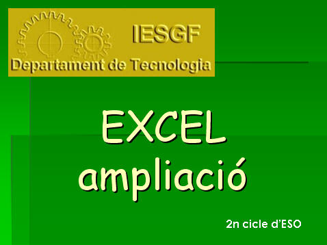 Excel bàsic. Curs d'iniciació a l'Excel, destinat als alumnes de 1r cicle d'ESO i per tots aquells que s'hi vulguin iniciar i no tinguin coneixements prèvis.