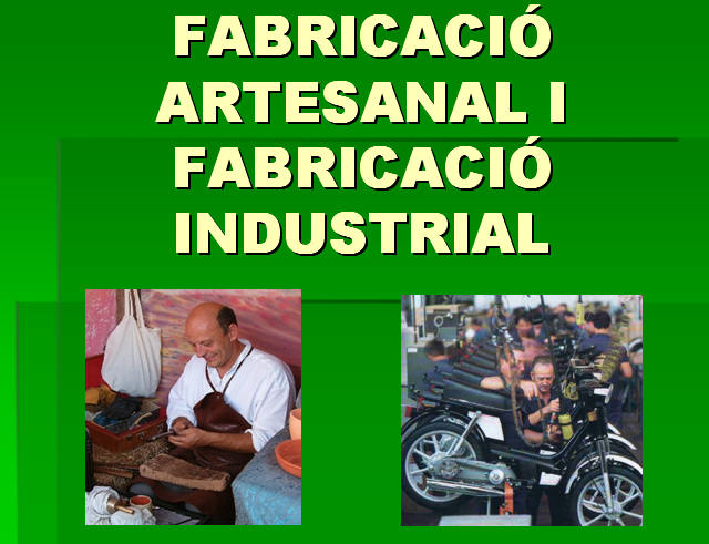 Fabricació artesanal i fabricació industrial. Comparativa i causes que van provocar el pas d'una societat artesanal a una industrial, destinat als alumnes de 1r cicle d'ESO.