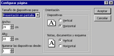 Configurar el tamaño y la orientación de la diapositiva Encabezados y pies de página Notas del orador |