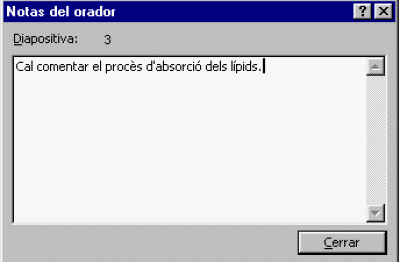 Si voleu consultar les anotacions, podeu fer-ho accedint a l'opció Notas del orador des del menú Ver.