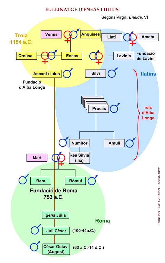 es remuntaria a Julus o Ascani, fill dEneas. Finalment els troians
