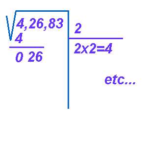 Hi ha diferents algorismes de l'arrel quadrada. L’algorisme que fem servir a l'escola és una mica complicat.- Abans els anava molt bé per que els donava resultats molt exactes, amb aproximacions decimals, fent servir només la suma, la resta i la multiplicació.