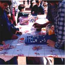 puntuacions. Des d'una ratlla es llancen 3 baletes i es sumen els punts