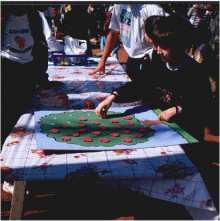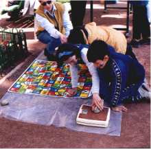 pissarra. 4 jugadors, situats dins un cèrcol, formen un quadrat,