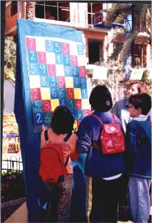 Targetes amb números. 1 Dau. 1 Tauler amb