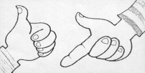 per tant aixequem un dit. Amb l'altra mà farem el mateix