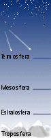 Mesosfera (50-80 km) : Termosfera (80-600 km) : Si algú ha tingut la sort de veure una aurora boreal que sapigui que és en aquesta capa de l'atmosfera on es forma aquest fenòmen. | ||