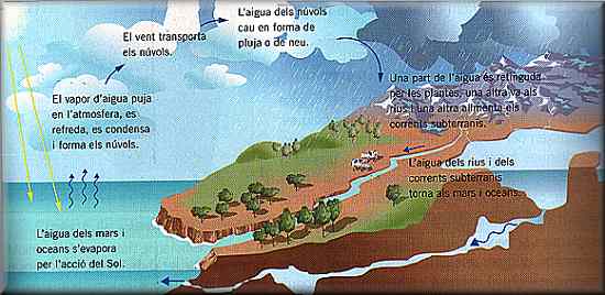 Concentrem-nos en la troposfera doncs.La troposfera és la capa atmosfèrica on és desenvolupen la majoria de fenòmens atmosfèrics; aquesta té un conjunt de propientats que la fan única. Anem a veure unes poques. A la troposfera és on es troben els núvols, objectes del nostre estudi. Gràcies al cicle de l'aigua és formen els núvols. Aquest cicle és composa de les següents fases : 1.L'aigua dels rius, mars o llacunes és evaporada per acció del sol. 2.Quan arriba a una certa alçada el vapor d'aigua es va refredant i es condensa formant petitísimes gotes d'aigua que dónen lloc al núvol. 3.Quan és dónen unes circumstàncies determinades aquest núvols dónen lloc a precipitació. Aquesta cau sobre els rius, mars o llacunes i el cicle torna a començar.