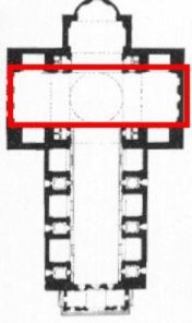 Transverse nave that forms a cross with the main nave. The place where the two naves are crossing is called crossing place.