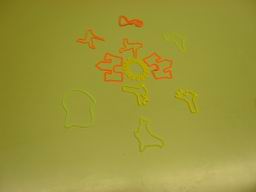 A 6è hem aprofitat els braçalets o polseretes de goma que ens agraden tant per treballar a Plàstica el color i la composició i això és una mostra del que hem aconseguit. Les fotos també les hem fet nosaltres. |