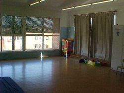 Tenim, a l'edifici del Parvulari una sala acondicionada per portar a terme aquestes sessions. Té el terra de suro i un bon armari per guardar el material. |
