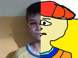La mitja cara la vam suprimir i la vam dibuixar amb el paint shop i la vam pintar amb el ratolí i va quedar mitja cara de foto i l'altre mitja la vam dibuixar. |