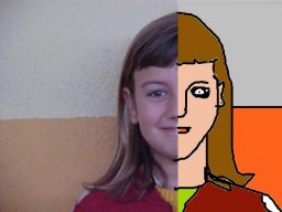 Aquesta mitja cara, que veieu a la esquerra, està formada per mitja foto, i ho demés, ho he dibuixat jo. Un cop dibuixat, ho pintem amb el cubell. Per fer això, hem utilitzat el Paint Shop Pro. |