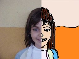 Hem fet la mitja cara amb el Gimp. Primer vam retallar una fotografia i després vam dibuixar la mitja cara. |