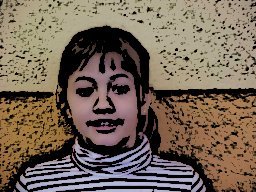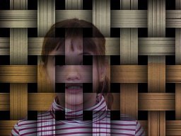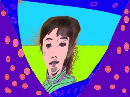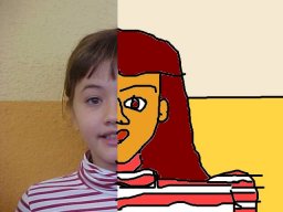 Hem fet la mitja cara amb el Gimp. Ens vam fer una foto, després, la vam tallar i la vam pintar |
