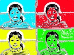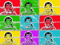 Era una foto, l'hem dividit en quatre, en nou o en més i després les hem pintat. Les hem fet amb l'estil de l'artista pop Andy Warhol. |