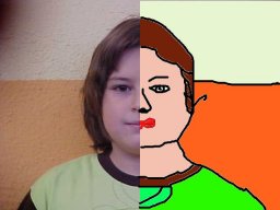 Aquesta mitja cara l'he feta dibuixant, primer hem fet una foto. He esborrat mitja cara. He dibuixat la mitja cara que he esborrat. He pintat la mitja cara que he dibuixat. |