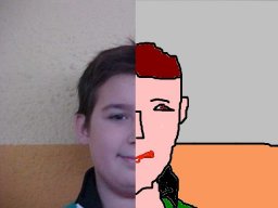 Aquesta foto l'hem aconseguit primer fent una foto normal, després hem esborrat mitja foto i l'hem pintat, més o menys, tot del mateix color i de la mateixa forma. Així hem aconseguit aquesta animació que anomenem: "el teu nom" mitjacara. |