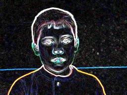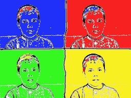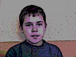 | He fet un efecte de taques de cafe. | A la cara li he modificat els colors. | Amb el Paint Shop Pro vaig ficar una llum. |
