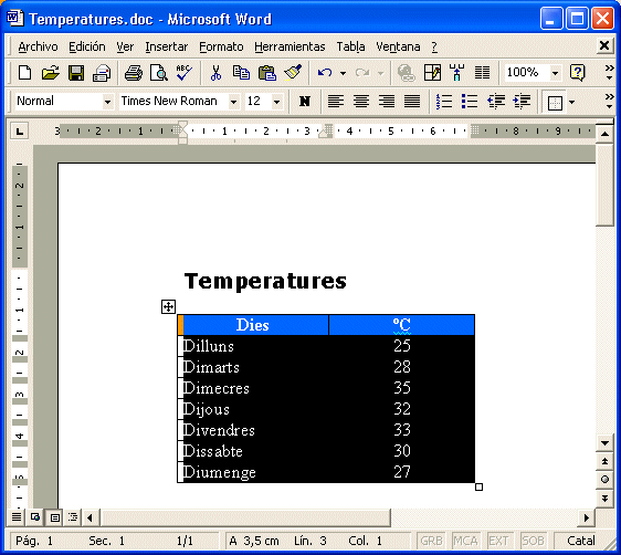 Per poder crear qualsevol tipus de gràfic hem de disposar primer de les dades recollides en una taula.