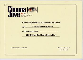 | Nominacions al FESTIVAL DE CINEMA JOVE de València. Dos dels nostres treballs has estat nominats: EL PASSATGE DE LA POR, el curs 2003-04 i TINTIN I EL MISTERI DE LA CAMPANA. Curs 2005-06 |