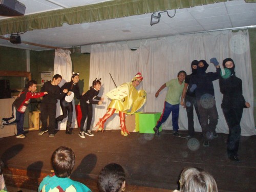 Els nens i nenes de sisè estan preparant una obra de teatre per als més menuts i menudes de l'escola:Els músics de Bremen.