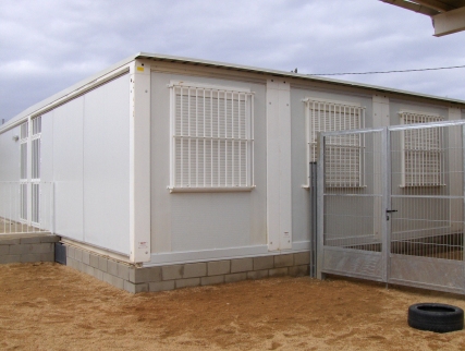 d'una nova escola. Al pati de l'escola tenim dues aules prefabricades