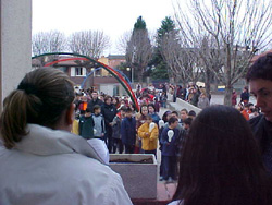 Tots portàvem un llaç blanc. Es va llegir un manifest contra la guerra que havíem fet ela alumnes, els mestres i els pares. |