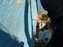 PAU pintant coloms i posant coloraines al pati. Un entorn bonic