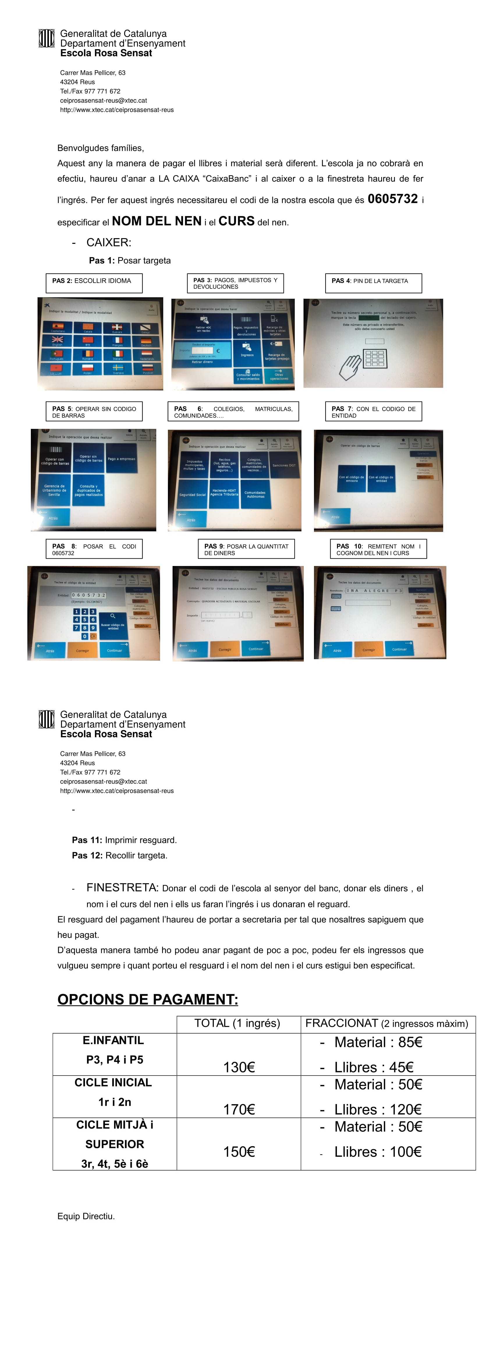 COM FER EL PAGAMENT DE LLIBRES A TRAVÉS DE LA CAIXA PER AL CURS 2018-19