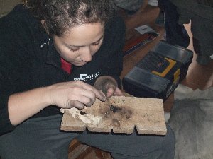 La monitora ens va ensenyar dos mètodes per obtenir foc: |