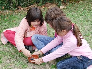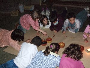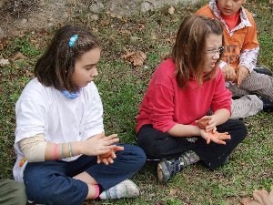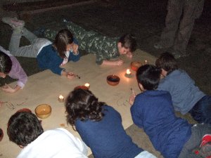 En aquest taller vam treballar de valent: si havíem de pintar com a homes i dones del paleolític ho havíem de fer dins d'una cova, i per això en primer lloc calia fabricar unes llànties per poder-nos il·luminar mentre pintéssim.