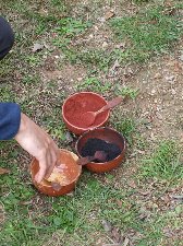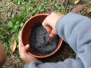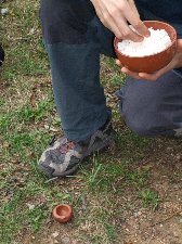 Després de preparar la llàntia, calia preparar la pintura de la mateixa manera que ho feien els homes primitius.
