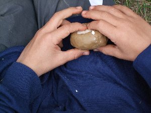 Per a fer la llàntia,havíem de fer una cassoleta de fang. |