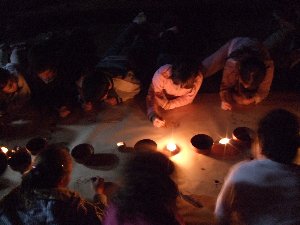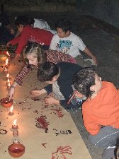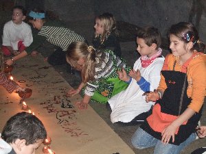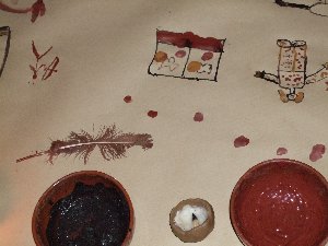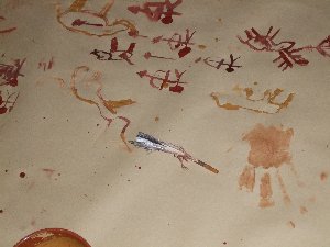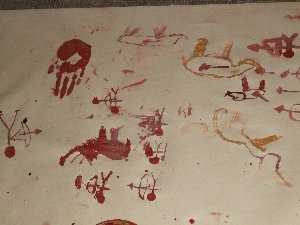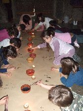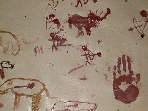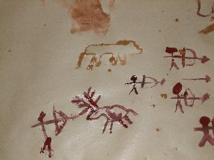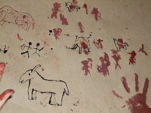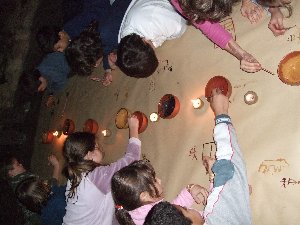 Un cop preparada la pintura, només cal entrar a la cova, encendre les llànties i començar a pintar amb petits bastons... |