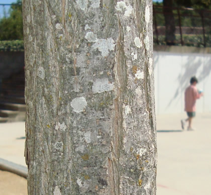El tronc és d’un color gris clar quan és jove i es va fent més fosc a mesura que es fa més gran.