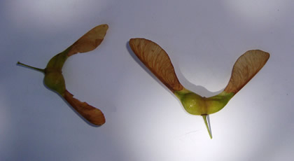 Els fruits són alats, de 2-4 cm de longitud. Les ales formen un angle agut. Es disposen en parells al llarg de fructificacions que pengen de l’arbre fins i tot quan aquest ha perdut el fullatge.